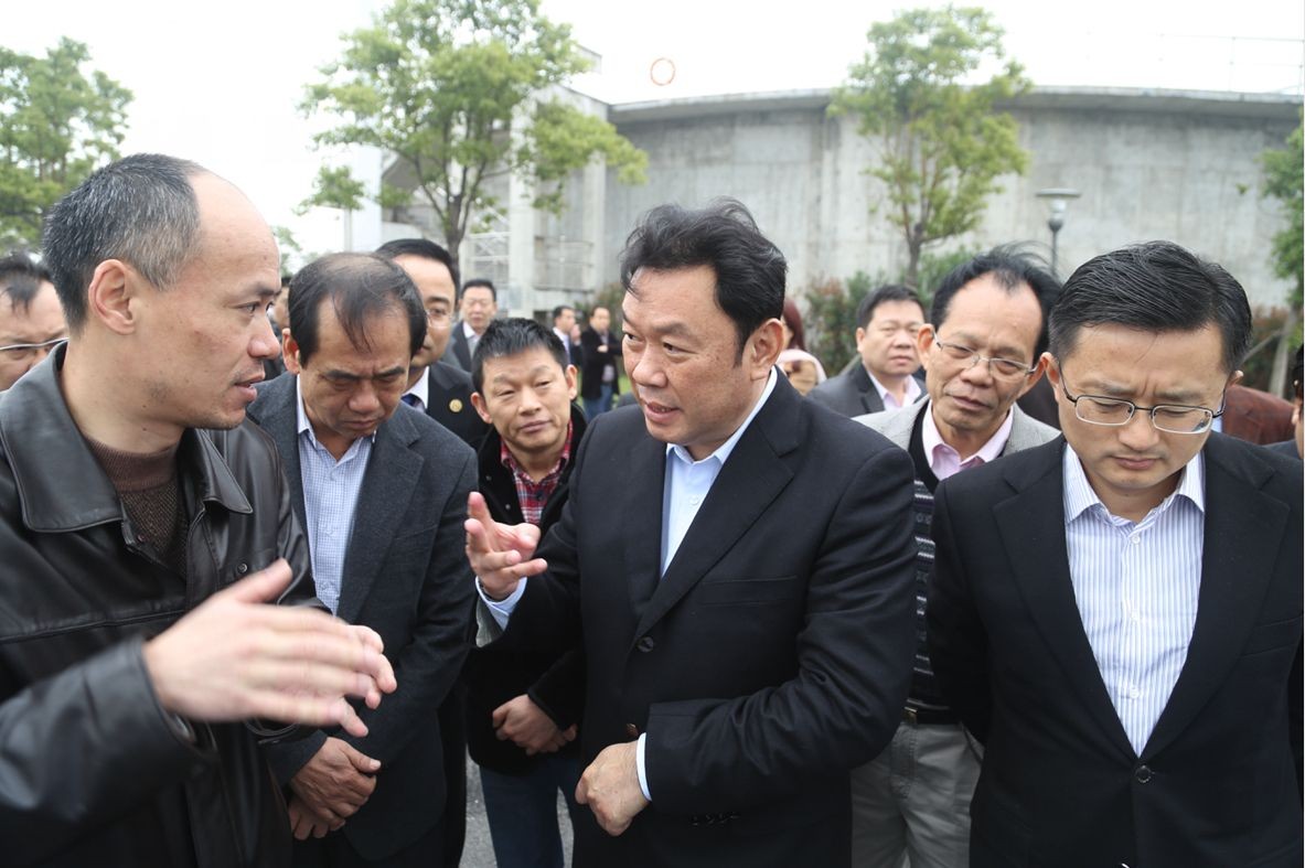 ,廣東省普寧市市委副書記、市長陳群峰帶隊的考察團走進江濱水處理公司實地考察濱海印染產業集聚區污水集中處理模式,區委常委傅青春等領導陪同調研。