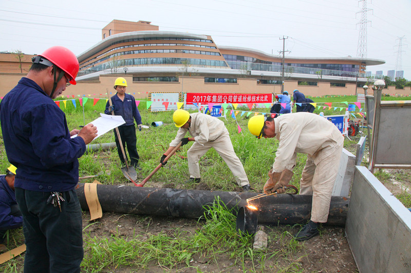 下午2時整,隨著裁判長一聲令下,技術(shù)比武活動拉開了序幕。此次比武采取現(xiàn)場實際操作的形式,模擬DN300mm螺旋鋼管,因地面沉降導(dǎo)致焊縫在鐘表位置4點到7點段開裂,要求參賽小組在規(guī)定時間內(nèi)用鋼板鑲嵌裂縫后手工焊條電弧焊焊接修復(fù)。比武現(xiàn)場氣氛緊張激烈,參賽人員全神貫注、你追我趕,經(jīng)過一個半小時的奮力比拼,各參賽小組依次完成比武內(nèi)容。隨后,裁判組根據(jù)安全防護(hù)、文明施工、考核時限、焊前準(zhǔn)備、焊縫質(zhì)量等方面的評分標(biāo)準(zhǔn)對各參賽小組的比武過程和最終結(jié)果進(jìn)行評分,最終產(chǎn)生一等獎1名、并列二等獎2名。